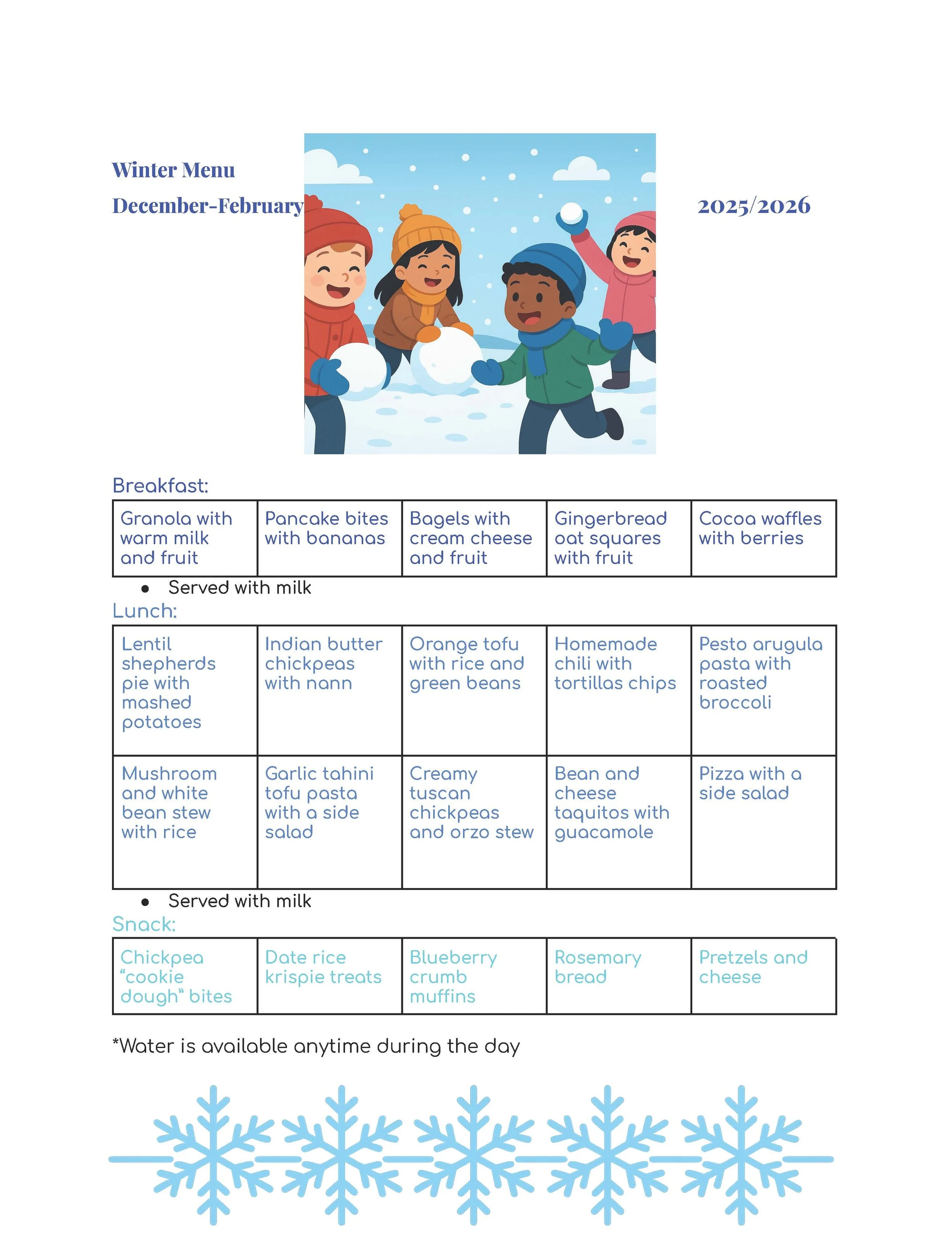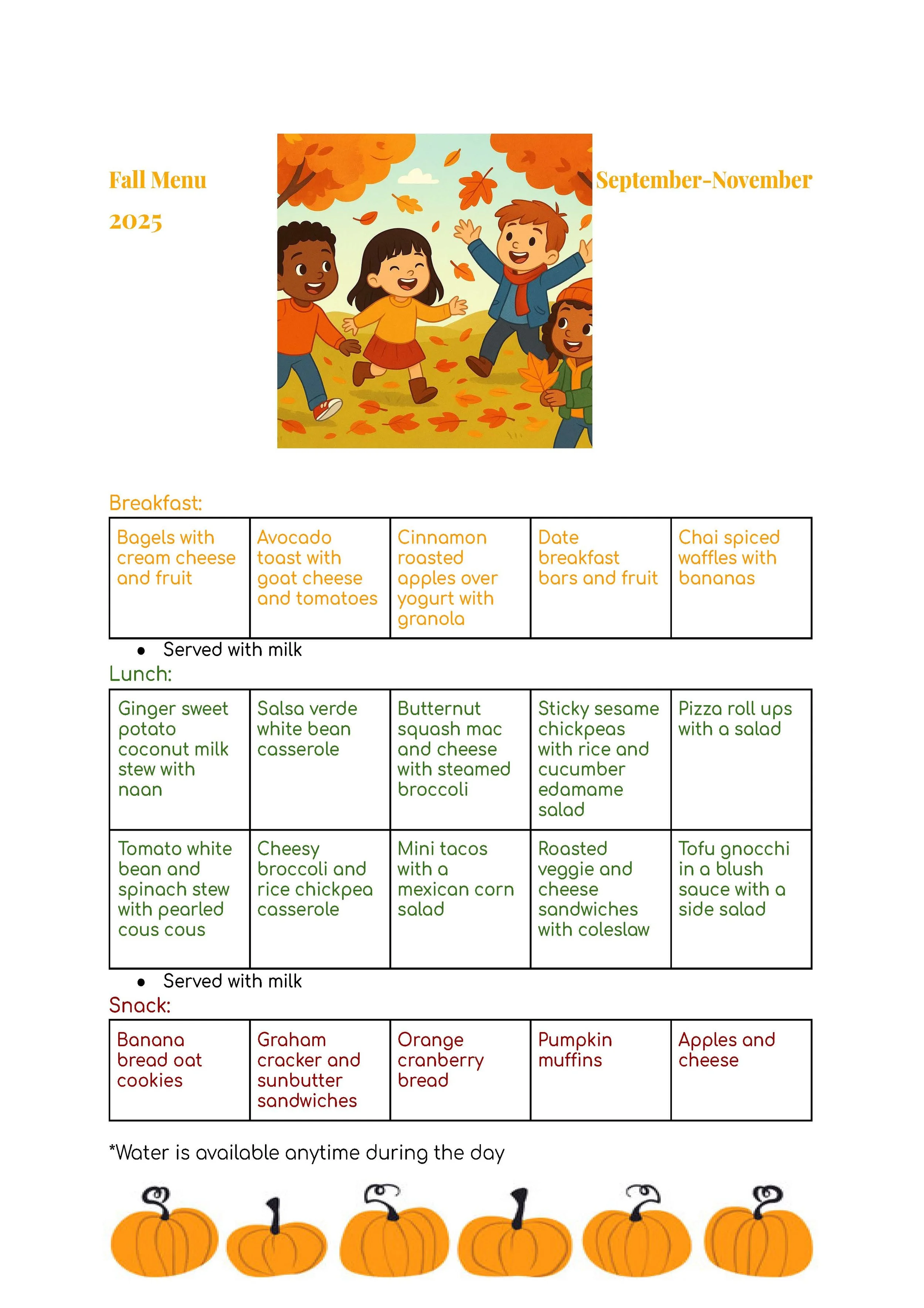 At Apple Blossom we believe serving kids the best ingredients with a variety of flavor profiles is the best way to build a life-long appreciation for wholesome food with spices and grains from around the world. Our food is always vegetarian, as well as egg and nut-free and of course meet the US daily requirements.